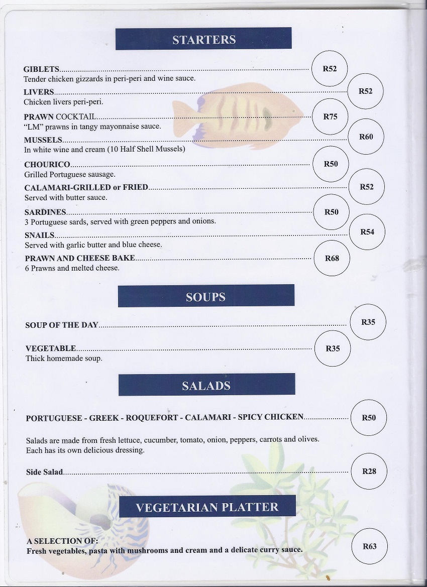 Bazaruto's is a Mozambican Portuguese family restaurant in Kloof, a tranquil upper highway suburb of Kloof KZN