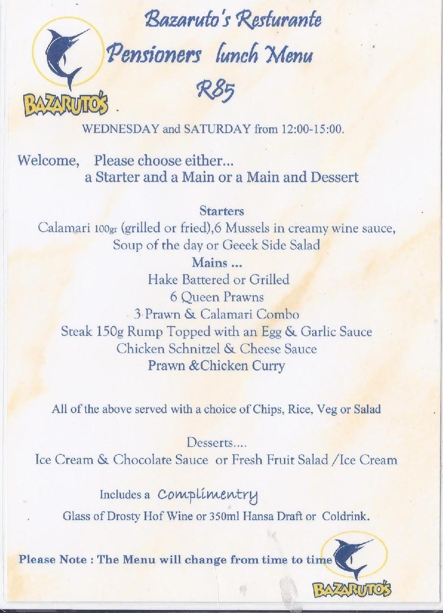 Bazaruto's is a Mozambican Portuguese family restaurant in Kloof, a tranquil upper highway suburb of Kloof KZN
